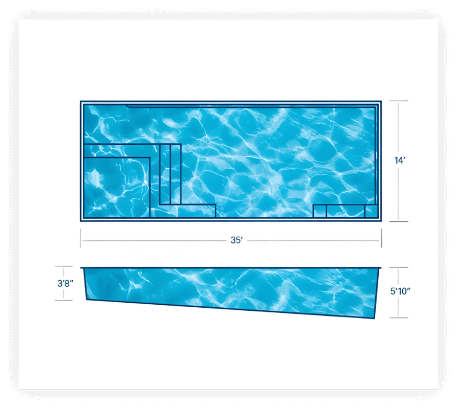 The M Series incorporates custom-made, non-skid texture on the ledge, steps, and pool floor, ensuring your safety.